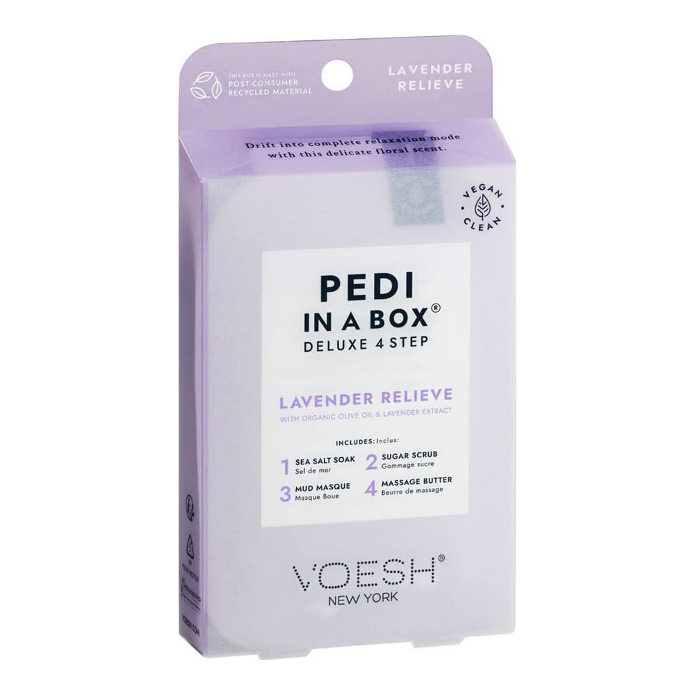 Détendez-vous et vivez une expérience luxueuse avec notre coffret pédicure Lavender Relieve en 4 étapes. Ce kit de pédicure spa tout-en-un, infusé à l'extrait naturel de lavande, vous transportera au pays des rêves pour une expérience de détente ultime. Restez calme et faites vos pieds. Offrez-vous un moment de détente et chouchoutez vos pieds avec notre pédicure Lavender Relieve ! Infusé à l'extrait naturel de lavande, ce soin des pieds apaise et calme la peau, la laissant douce, souple et confortable. De plus, son parfum vivifiant, doux et floral de lavande vous plongera dans un pur moment de bonheur !