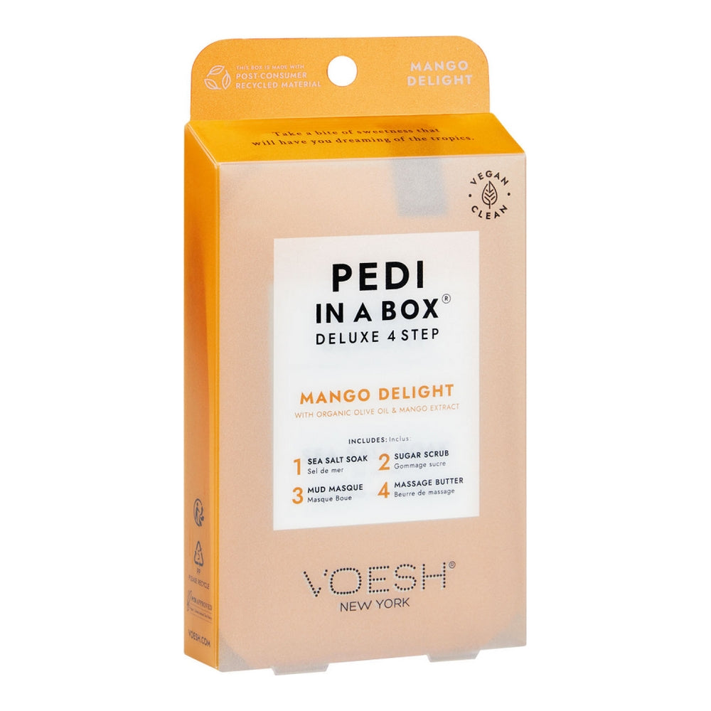 Offrez à vos clients une pédicure spa délicieusement exotique grâce à notre coffret « Pédicure en boîte » en 4 étapes, enrichi en extrait de mangue pour une sensation de fraîcheur et de vitalité. Riche en vitamine C, l’extrait de mangue est reconnu pour illuminer, apaiser et protéger la peau. Envie d’une escapade tropicale ? Dites-leur de se faire plaisir avec ce soin à la mangue !