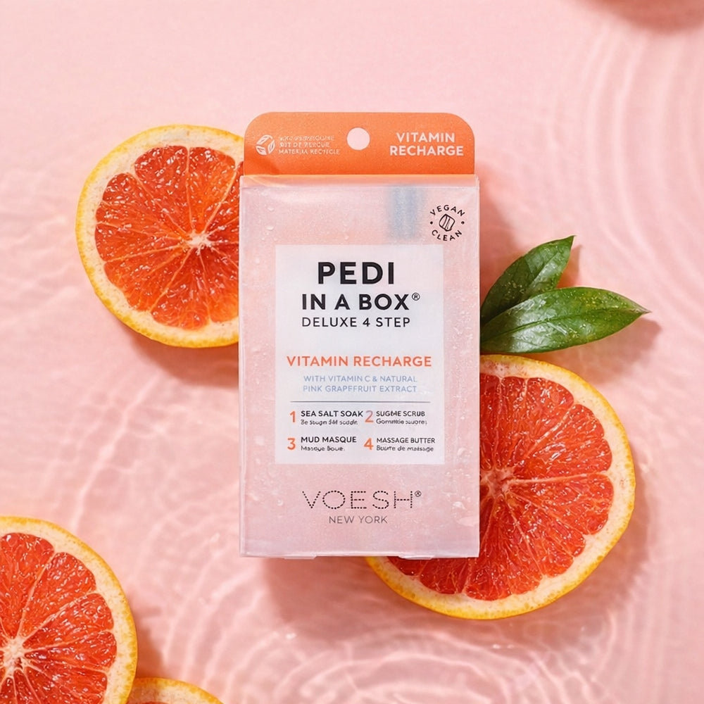 Détendez-vous et offrez-vous un moment de luxe avec notre coffret Pédicure Vitaminée Recharge en 4 étapes. Ce kit de pédicure spa tout-en-un est enrichi en vitamine C pour une sensation de fraîcheur et une peau éclatante !