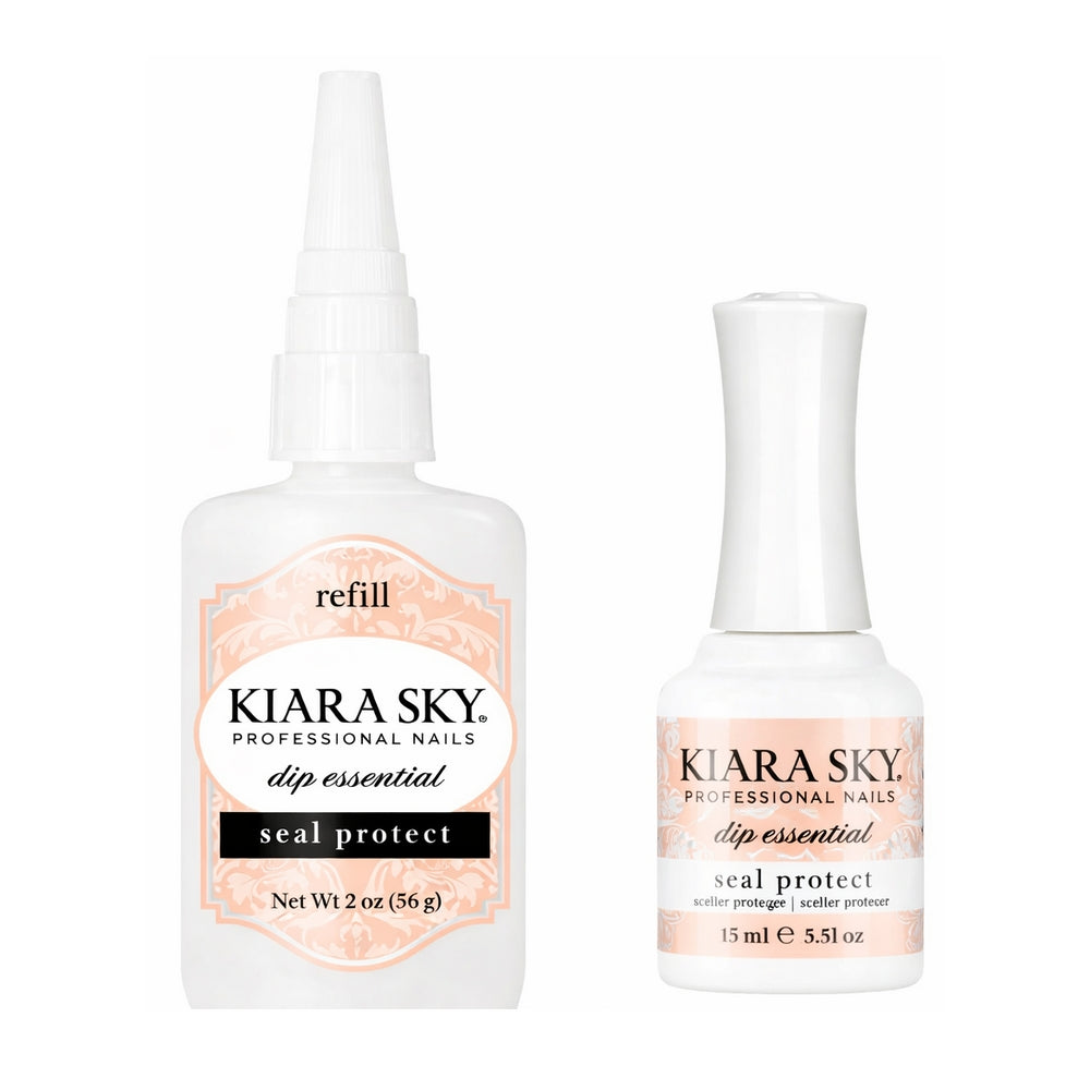 #3 Seal Protect: The third step in our dip system is our Seal Protect polish. This acrylic nail sealer is used to harden the powder and seal all previous layers so the nail can be drilled, filed, and polished.