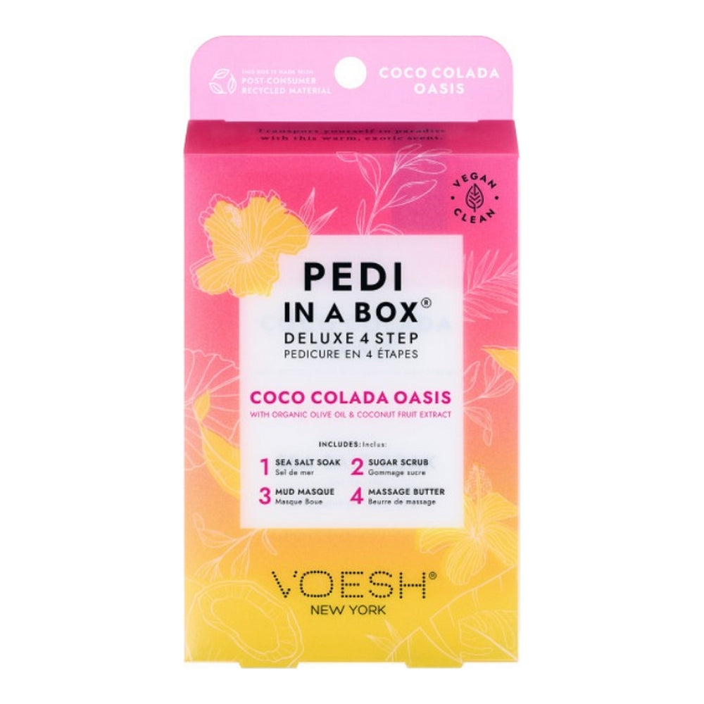 Offrez-vous une escapade tropicale inoubliable avec le coffret Pedi in a Box Deluxe Oasis Coco Colada en 4 étapes ! Ce kit de pédicure spa contient tout le nécessaire pour choyer vos pieds et vous transporter dans une oasis de sérénité baignée de soleil, de sable fin et d'eaux turquoise.