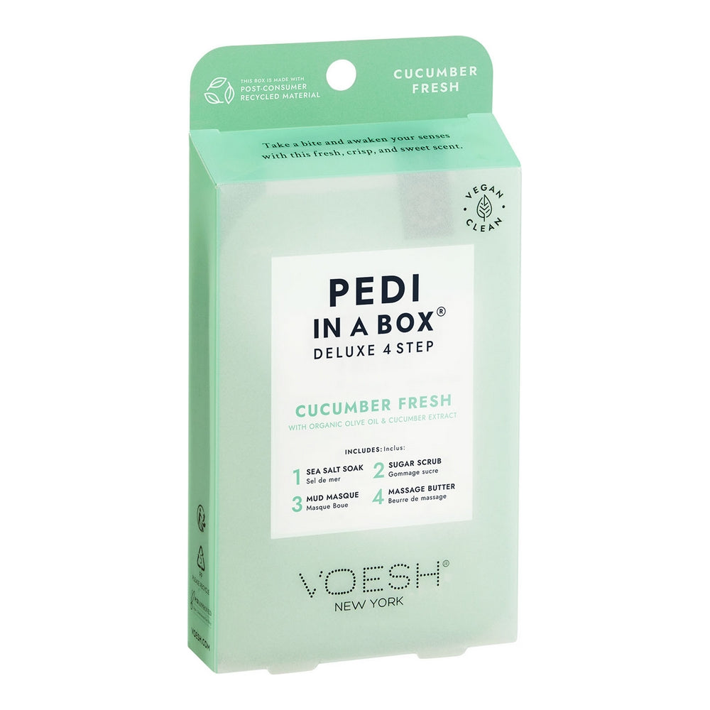 Offrez à vos clients un soin des pieds rafraîchissant avec notre pédicure en 4 étapes au parfum de concombre. Enrichis en extrait de concombre, nos produits pré-emballés, propres et hygiéniques, apaisent les inflammations et hydratent la peau en profondeur – un véritable bienfait pour la plante des pieds !